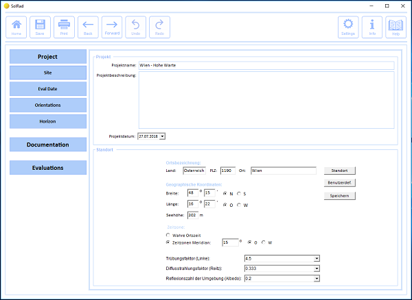 The original version of the SolRad program was developed by the Office of Applied Mathematics, Dr. Walter Heindl, in Vienna from the late 1970s to the early 1980s. Between 1990 and 2003, Tomasz Kornicki, in collaboration with Dr. Krec, created another version of the program.