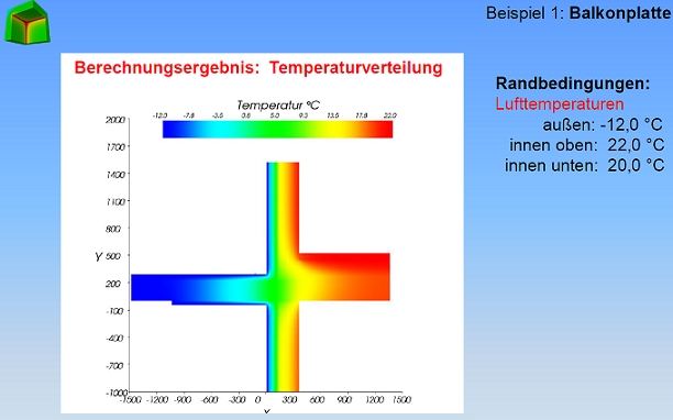 Zudem wird aus der ebenfalls errechneten Temperaturverteilung die Verteilung des Sättigungsdampfdruckes in der untersuchten Baukonstruktion bestimmt.