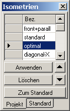 Die projektspezifische Liste der Isometrien wird im Register Projekt