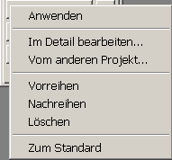 Die Anzeige der projektspezifischen Liste verfügt über ein Kontextmenü: