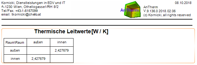 - Leitwert 3D: wird bei einem 3D-Beispiel von AnTherm berechnet. Man kann den Leitwert manuell eingeben oder ihn automatisch aus dem Leitwert-Bericht übernehmen lassen, indem man zuerst die Berechungen durchführt und danach den Chi-Rechner öffnet.