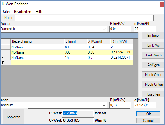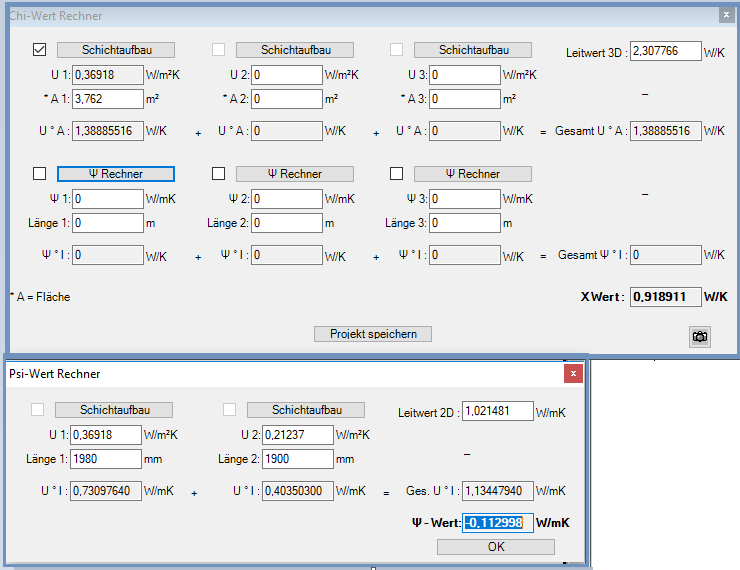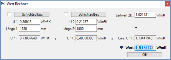 Psi-Wert Rechner (Werkzeug), U-Wert