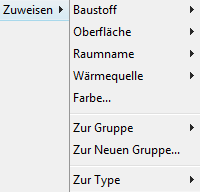 Wärmequellen, Oberflächen und Baustoffe) zur Auswahl angeboten.