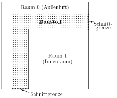 Räume (Raum 0 (Außenluft) und Raum 1 (Innenraum)) gebildet. Andere Teile der Bauteilbegrenzung - sie