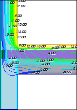 Eine rasche Übersicht über die berechnete Temperaturverteilung in der Bauteilkonstruktion lässt sich durch ein ”Falschfarbenbild” gewinnen. Im zweidimensionalen Fall gibt es nur ein einziges derartiges Bild, im dreidimensionalen Fall können solche Bilder sowohl für Ebenen parallel zu den drei Koordinatenebenen als auch für eine beliebige Ansicht der Baukonstruktion erzeugt werden.