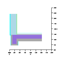 Ein fertig gestelltes 2D Projekt besteht aus einer Folge von Elementen. Die Reihenfolge der Elemente spielt insofern eine wichtige Rolle, da später eingegebene Elemente die früher eingegebenen ganz oder teilweise überdecken wenn sie gleiche Bereiche der Ebene beanspruchen. Anmerkung: Intern AnTherm speichert ein 2D Modell als einschichtiges 3D Modell mit der Dicke von genau 1000 mm - also 1,0 m - in der Z Richtung.