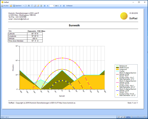 The original version of the SolRad program was developed by the Office of Applied Mathematics, Dr. Walter Heindl, in Vienna from the late 1970s to the early 1980s. Between 1990 and 2003, Tomasz Kornicki, in collaboration with Dr. Krec, created another version of the program.
