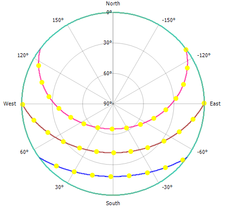 Sun orbits in polar diagram (including horizon elevations)